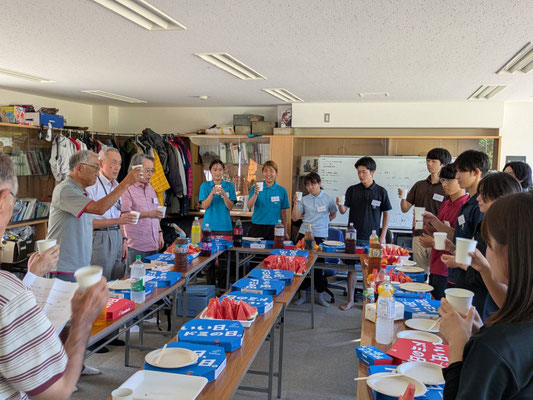 また、北海道遠征直前の忙しい時期にもかかわらず、壮行会の開催に協力してくれた学生の皆さんも、ありがとうございました。今回は馬場での開催に加え、夕当番の時間とも重なっていたため、初めの30分のみの参加を基本とし、途中の出入りを自由としました。それでも学生たちは交代で参加しながら、最後までOBの皆さんのスピーチに耳を傾けていました。
